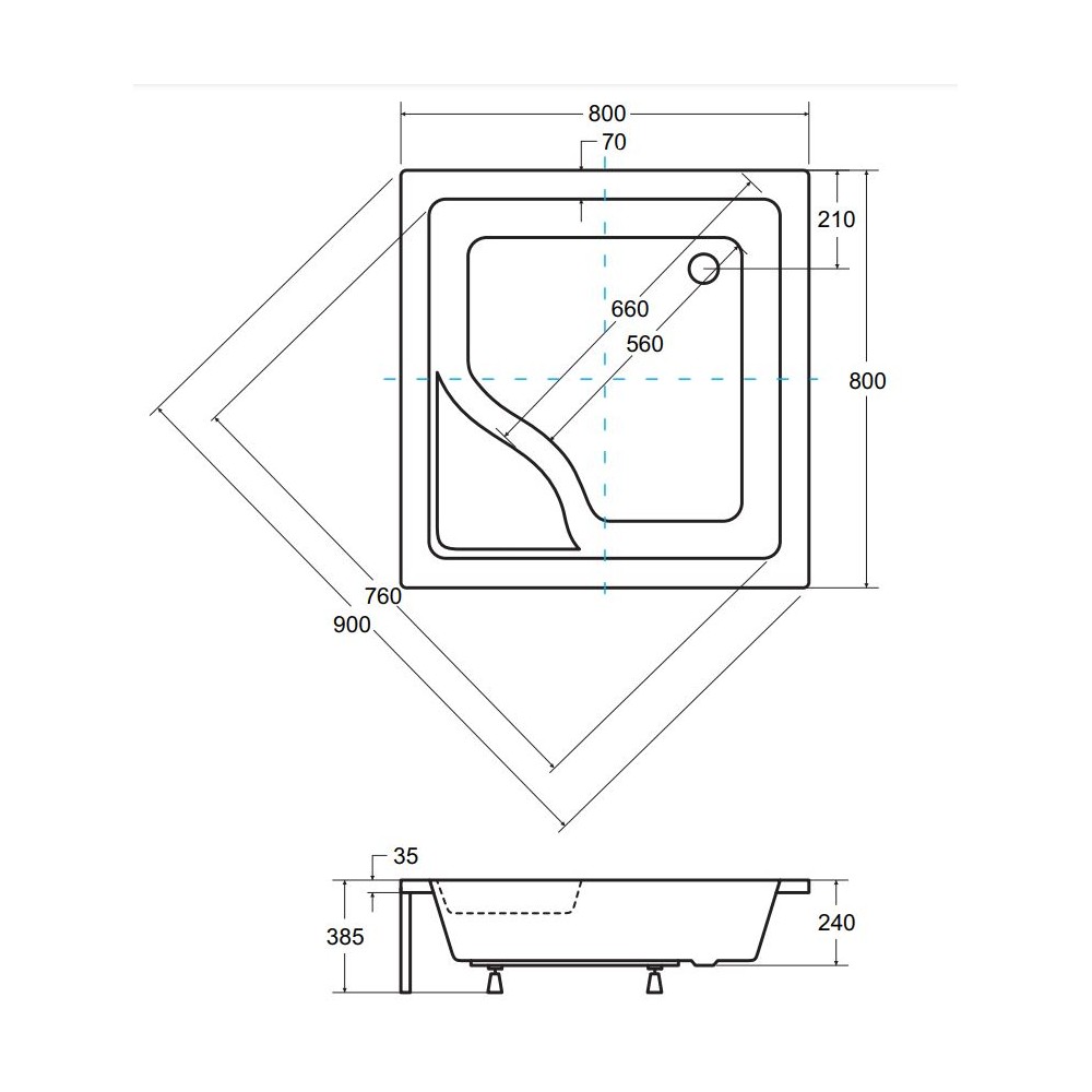 Besco Igor 80 szögletes, mély zuhanytálca 80x80x24