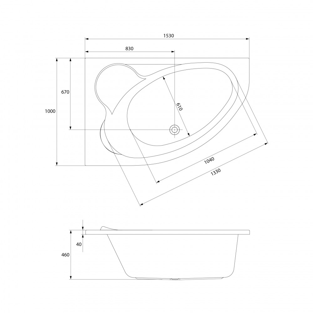 Aszimmetrikus balos akril kád 153x100