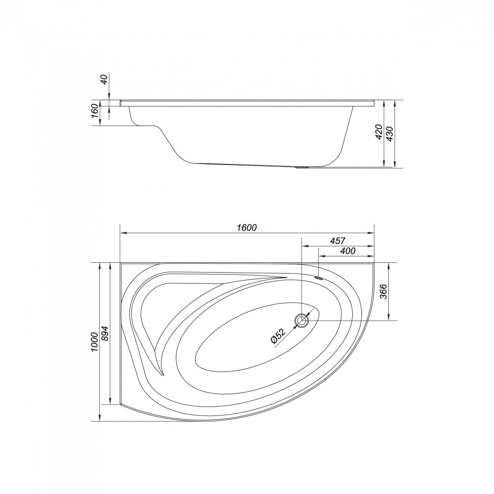 Kád űrtartalma:160x100 190literElőlap és oldallap külön rendelhető!