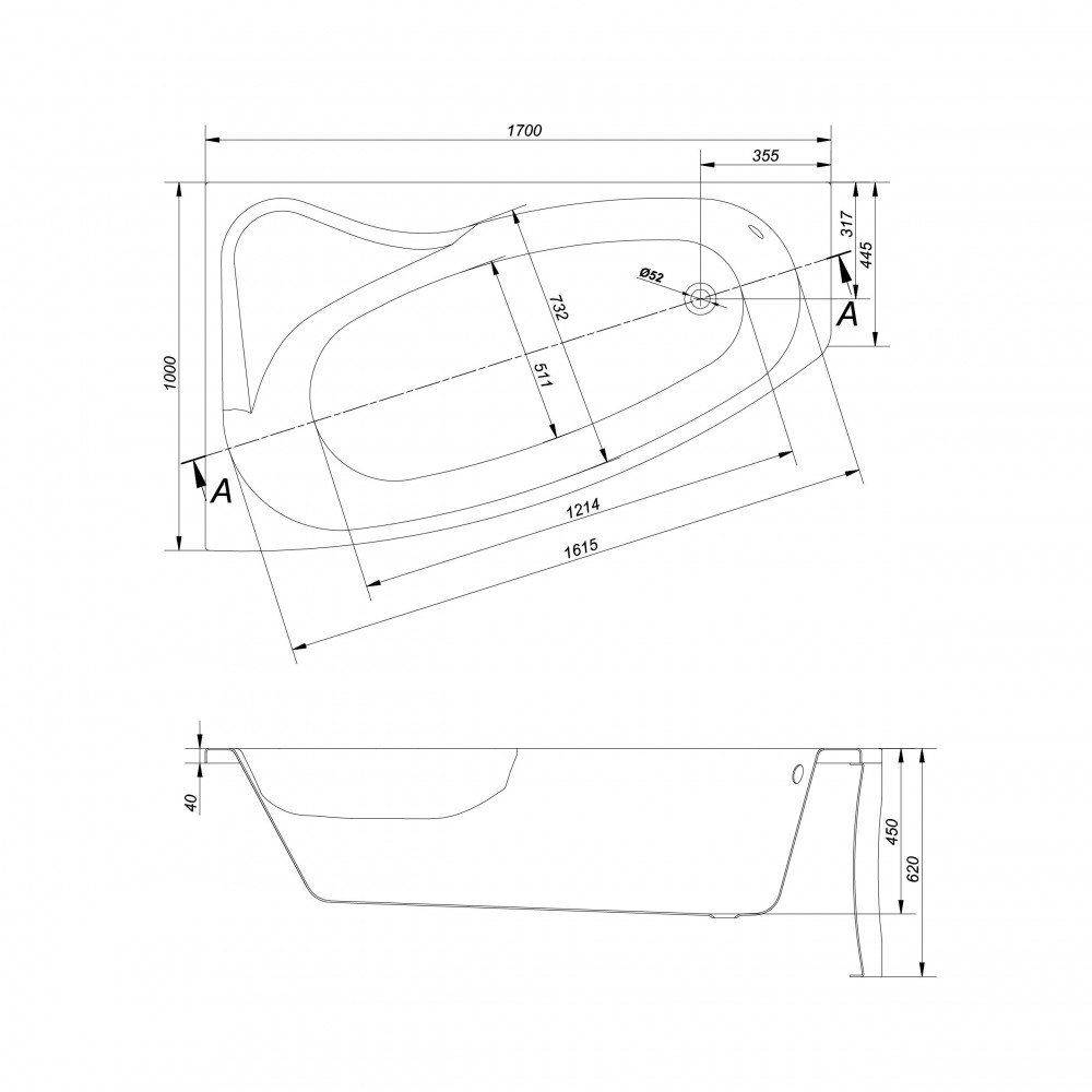 Aszimmetrikus balos akril kád 170x100