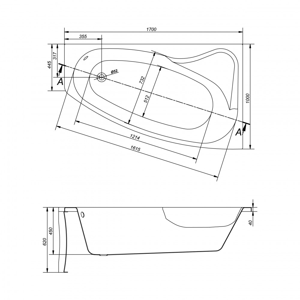 Aszimmetrikus jobbos akril kád 170x100