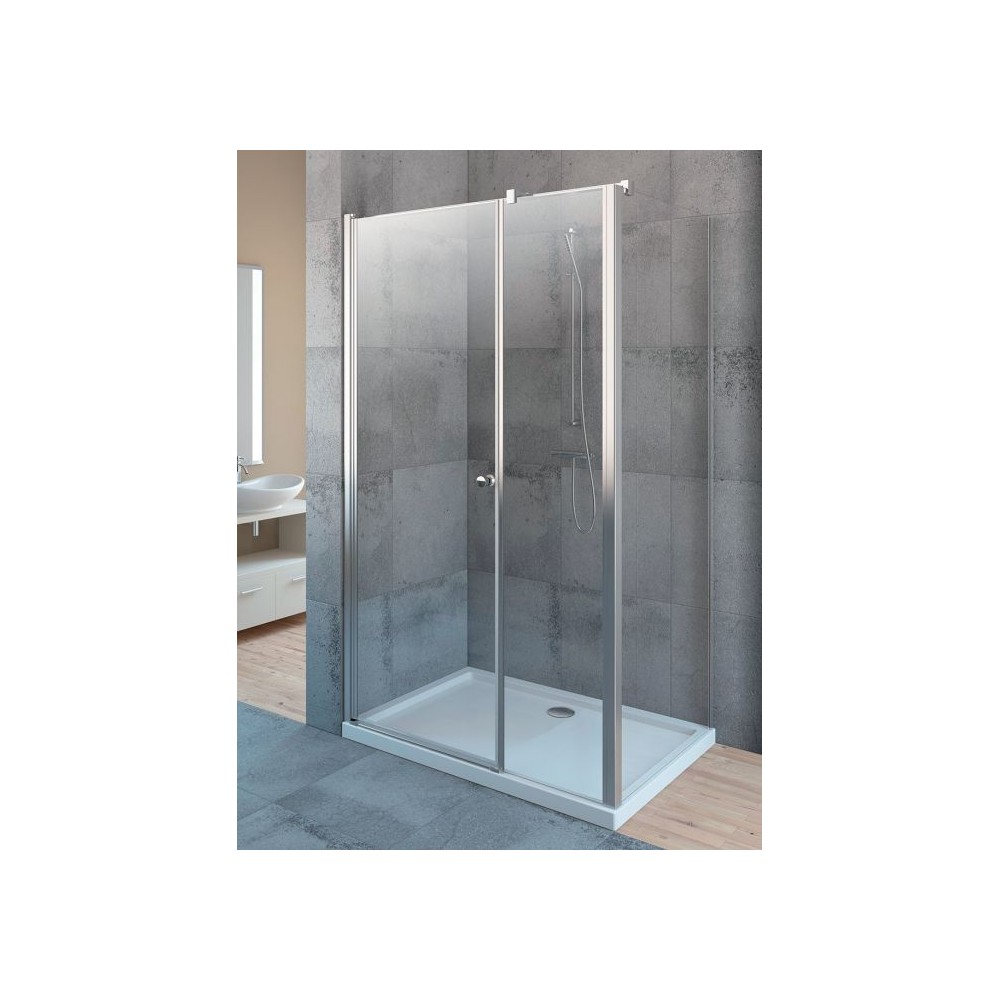 Kifelé-befelé nyíló szögletes zuhanykabin egy fix és egy nyíló oldallal.